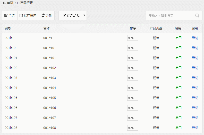 此模块用于对系统的产品信息进行管理。您可以进行更新、排序、筛选等操作。