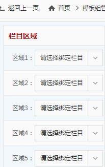 注:1.关于链接管理的操作方法,后面会讲到;2.如果您的网站没有栏目,那么将无法操作此处,同理,如果您在栏目管理中删除了选中的栏目,那么首页设置的栏目区域中将清除这个栏目,对应区域在首页将变成空白区域或显示出错,所以如果您需要更改栏目,不要忘记首页设置里需要重新设置。