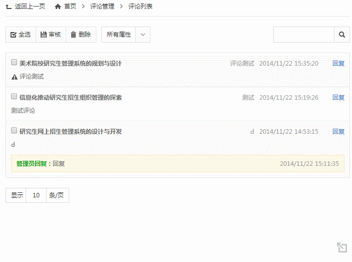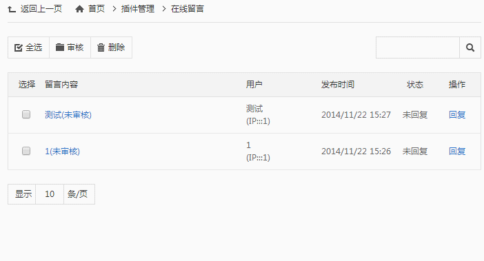 您可以通过此模块来管理网站访客的留言数据。您可以进行审核、回复、删除、筛选等操作。