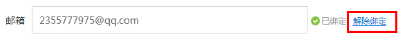 第二步,点击邮箱信息栏右侧的“解除绑定”