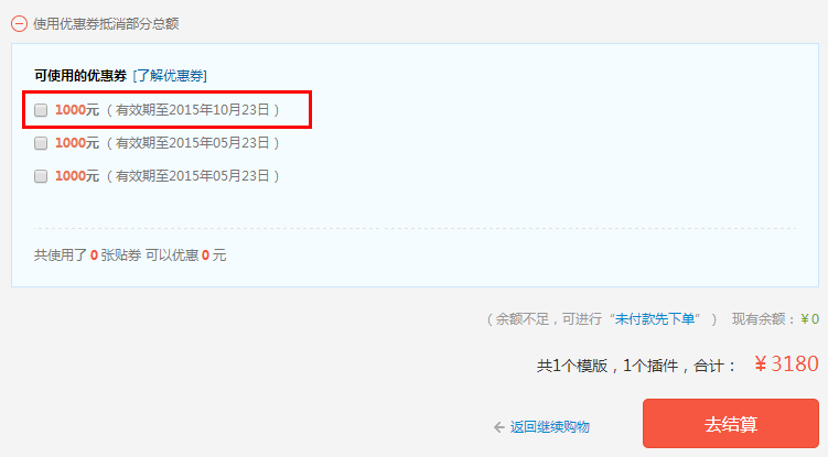 第二步:选择可使用的优惠券,如下图示。