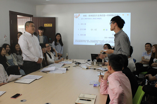 当知道广东力拓两大销售团队辩论,那是一个激动啊,这样的场面真是活久见啊。东莞销售的“千机辩”队和广州分销的“我们就怕这个队”队,前者认为“爱情日久生情比较真”,后者则认为“爱情一见钟情比较真”,面对“感情”问题,两组队伍丝毫不让步,当知道广东力拓两大销售团队辩论,那是一个激动啊,这样的场面真是活久见啊。东莞销售的“千机辩”队和广州分销的“我们就怕这个队”队,前者认为“爱情日久生情比较真”,后者则认为“爱情一见钟情比较真”,面对“感情”问题,两组队伍丝毫不让步,尽管开始的时候广州分销气势有点被压制,但后来,广州分销的有力论点,有使东莞销售出现“无言以对”的时刻。最终,东莞销售获得了小组胜利,获得下午决赛的入场券。辩论最有趣的地方,就是即使场上如何辩论,但在比赛结束,能一笑泯恩仇。