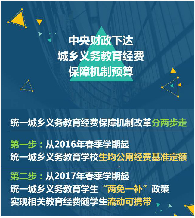 为确保国务院确定第二步改革目标如期实现,近日,中央财政下达城乡义务教育经费保障机制预算1170亿元,比2016年增加约70亿元,增长6.4%。