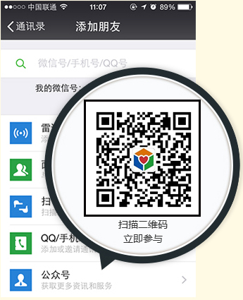1、打开微信扫描二维码,关注贴心大学微信公众号;